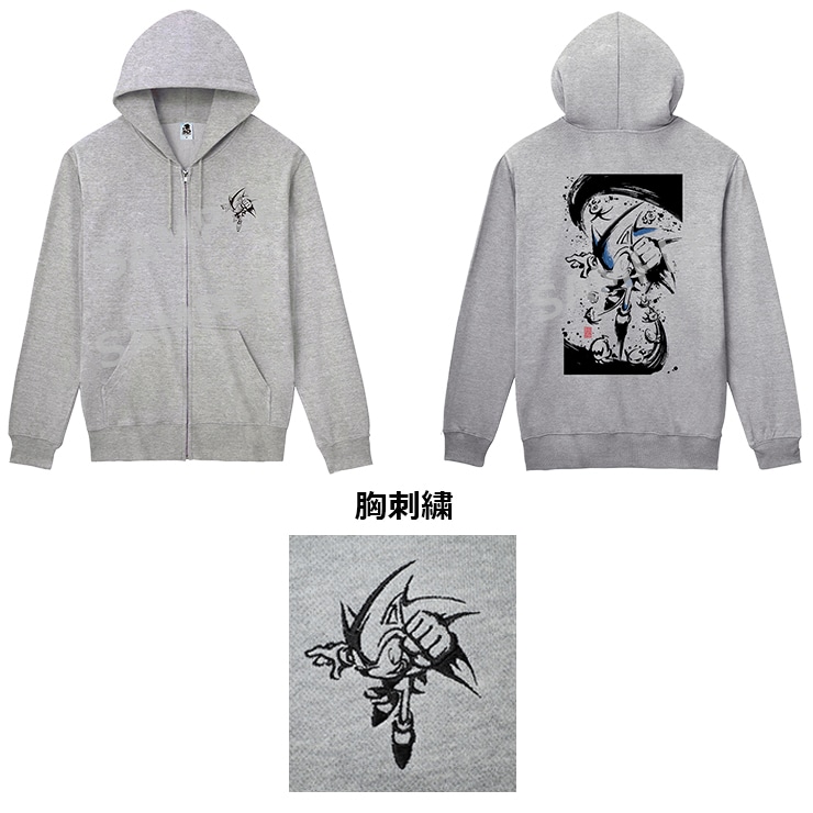 ソニックを墨絵で描く「墨絵 超音速針鼠」と『ソニックカラーズ アルティメット』のコラボイラストを使用したジップアップパーカーが登場。