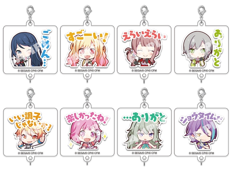『プロジェクトセカイ カラフルステージ! feat. 初音ミク』のゲーム内で使われているかわいいスタンプのイラストを、繋いで飾れるアクリルチャームコレクションにしました。