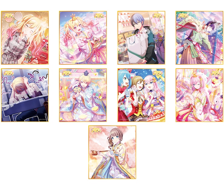 『プロジェクトセカイ カラフルステージ! feat. 初音ミク』に登場するキャラクターのイラストがコレクションできるミニ色紙です。第8弾Bではゲーム内イベント「天馬さんちのひな祭り」から天馬 咲希、望月 穂波、青柳 冬弥、天馬 司、巡音ルカの全9種がラインナップ。