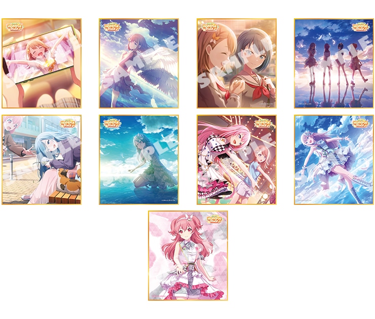 『プロジェクトセカイ カラフルステージ! feat. 初音ミク』に登場するキャラクターのイラストがコレクションできるミニ色紙です。第8弾Cではゲーム内イベント「届け!HOPEFUL STAGE♪」から花里 みのり、桐谷 遥、桃井 愛莉、日野森 雫、巡音ルカの全9種がラインナップ。