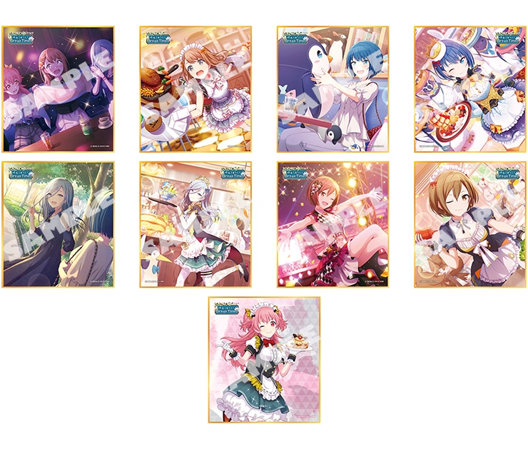 『プロジェクトセカイ カラフルステージ! feat. 初音ミク』に登場するキャラクターのイラストがコレクションできるミニ色紙です。第10弾Cではゲーム内イベント「頑張るあなたにBreak Time!」から花里 みのり、桐谷 遥、桃井 愛莉、日野森 雫、MEIKOの全9種がラインナップ。