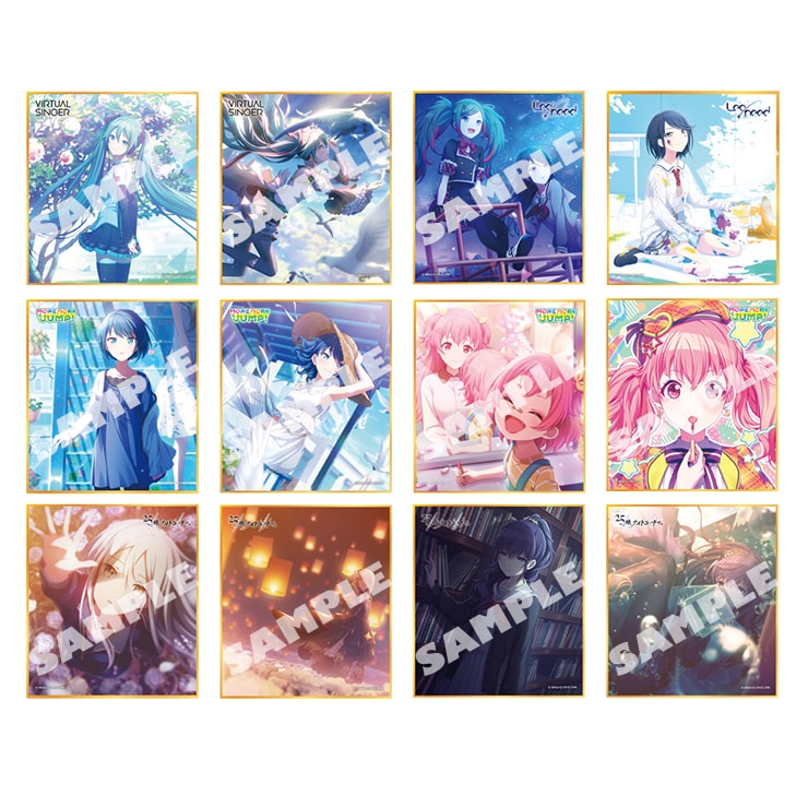 『プロジェクトセカイ カラフルステージ! feat. 初音ミク』に登場するキャラクターのイラストがコレクションできるミニ色紙です。今回はSP(スペシャル)verとして「カラフルフェスティバルガチャ」から、初音ミク、星乃 一歌、桐谷 遥、桃井 愛莉、宵崎 奏、朝比奈 まふゆの全12種がラインナップ。