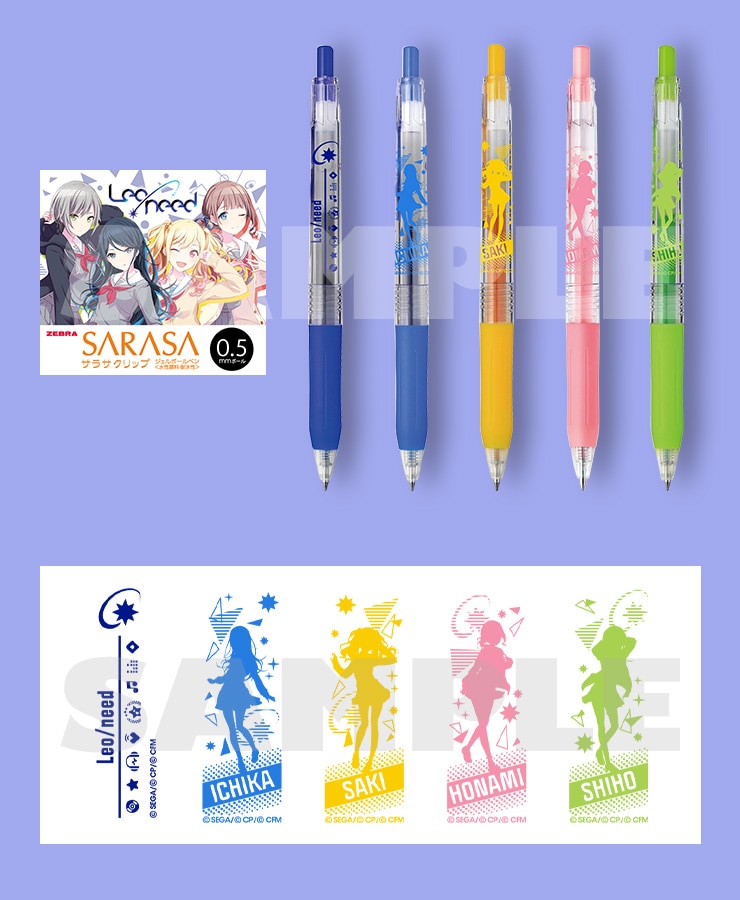 『プロジェクトセカイ カラフルステージ! feat. 初音ミク』に登場する「Leo/need」のメンバーをイメージしたサラサクリップです。星乃 一歌、天馬 咲希、望月 穂波、日野森 志歩、ユニットマークの5本がセットになっています。