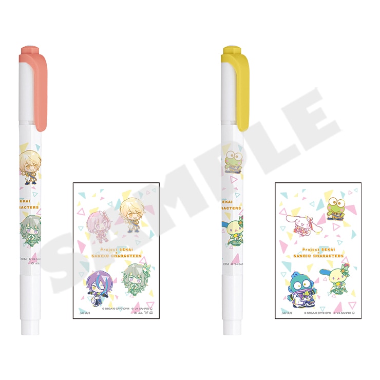 「プロジェクトセカイ カラフルステージ! feat. 初音ミク×サンリオキャラクターズ」より今回のために描き下ろされたミニキャラを使用したマイルドライナーです。あたたかみのある優しい色合いが特徴のマイルドライナーから、ユニットのイメージに合わせたカラーが2本セットになっています。