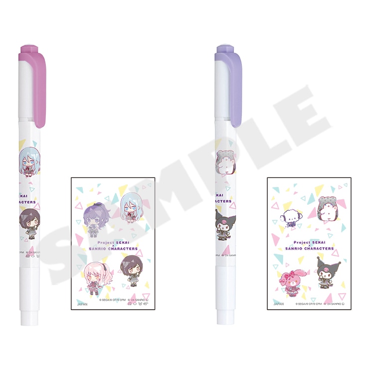 「プロジェクトセカイ カラフルステージ! feat. 初音ミク×サンリオキャラクターズ」より今回のために描き下ろされたミニキャラを使用したマイルドライナーです。あたたかみのある優しい色合いが特徴のマイルドライナーから、ユニットのイメージに合わせたカラーが2本セットになっています。
