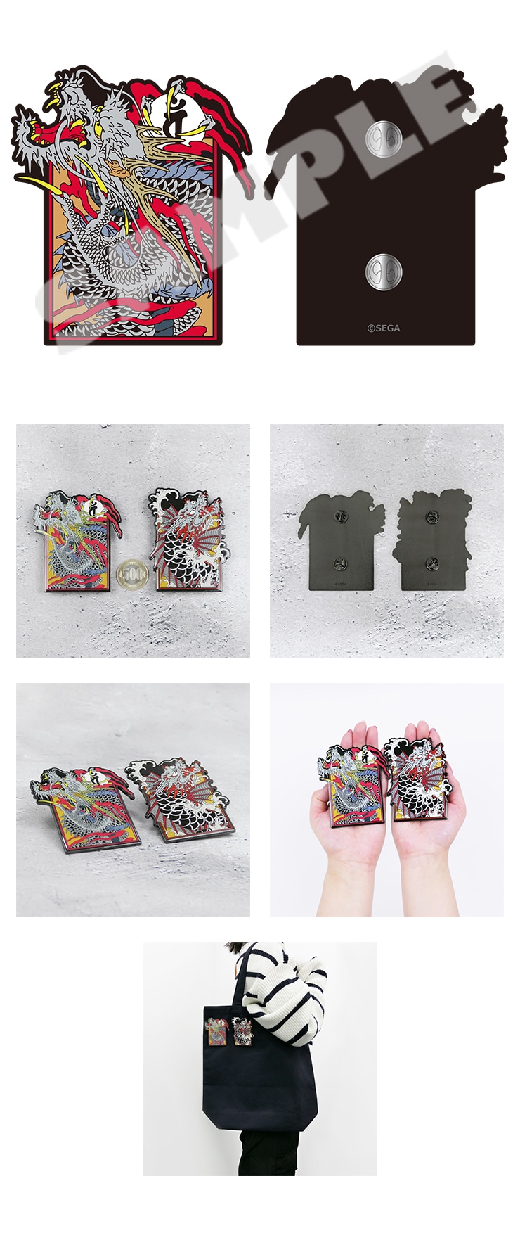 桐生一馬の刺青「応龍」がビッグサイズなピンバッジになって登場。