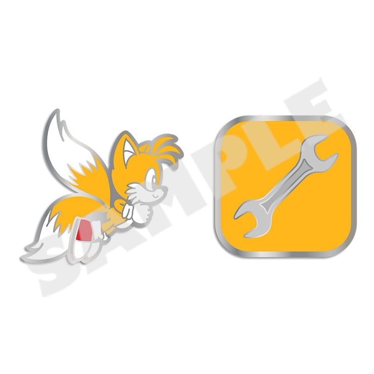 テイルスとアイテムをそれぞれピンバッジに!服やカバンなど、好きなものに付けてお楽しみください。
