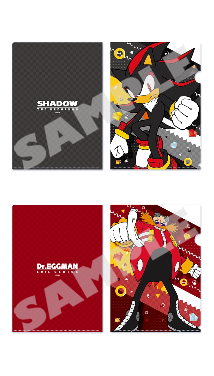 シャドウとDr.エッグマンがそれぞれプリントされたクリアファイル2枚セットです。オフィスや学校で使うのはもちろん、コレクショングッズとしてもおススメのアイテムです。