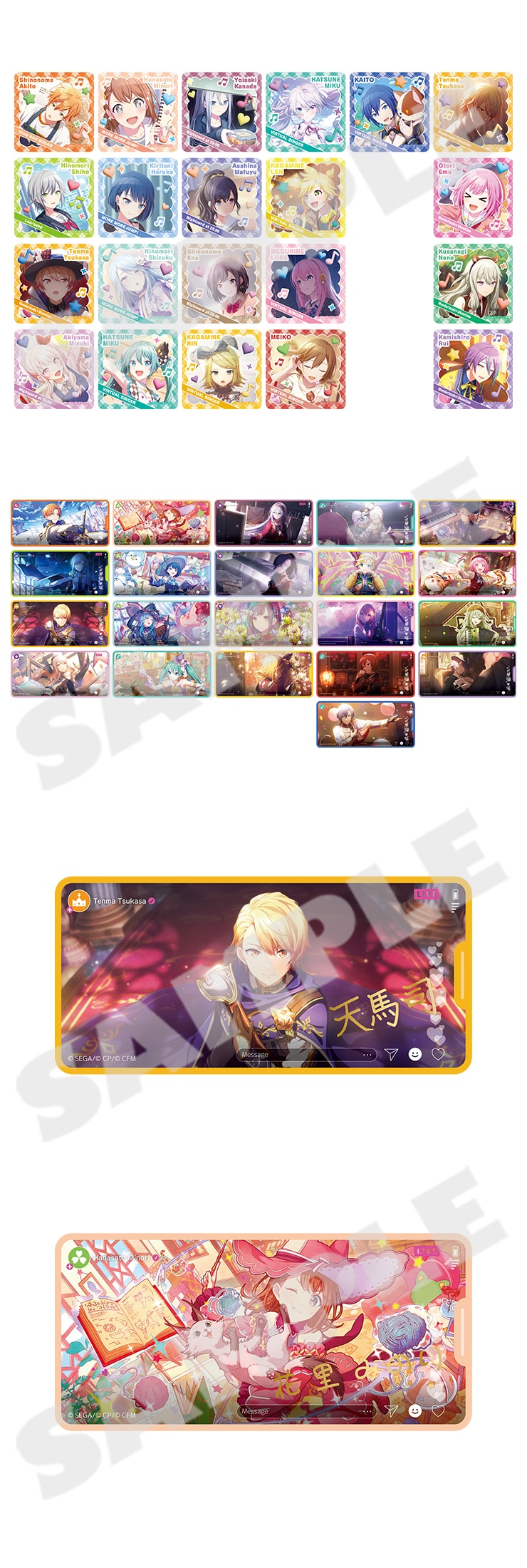 『プロジェクトセカイ カラフルステージ! feat. 初音ミク』に登場するキャラクターのイラストがコレクションできるステッカーです。レアステッカー(21種)には、直筆風のキャラクター名が箔押しされています。スマホケースの中に入れたり、集めたりして楽しんでください♪