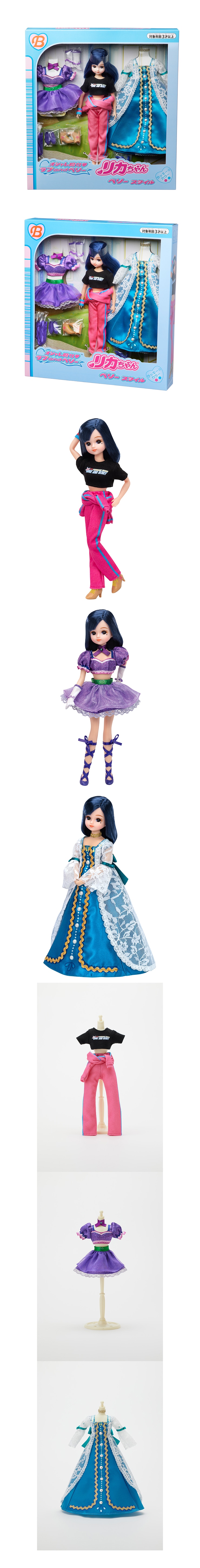 ベリーのスタイルになったオリジナルリカちゃんと、ピチッと黒T、キラリンパープル、きらパールドレスの3着が付いている豪華セットです。