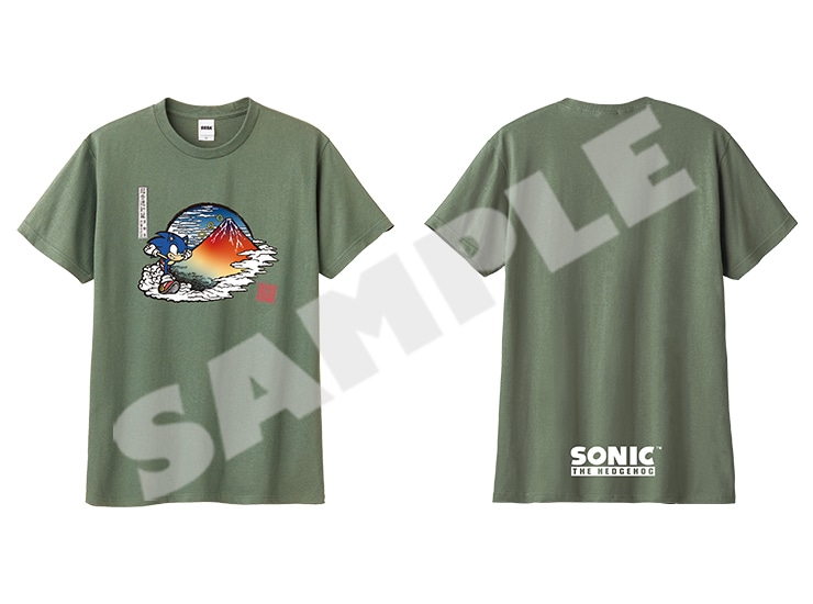 赤富士として世界的に有名な「富嶽三十六景 凱風快晴」モチーフのアートをデザインしたTシャツです。富士山にかかる雲を駆け上がるソニックの勇姿をぜひ身に着けてお楽しみください!
