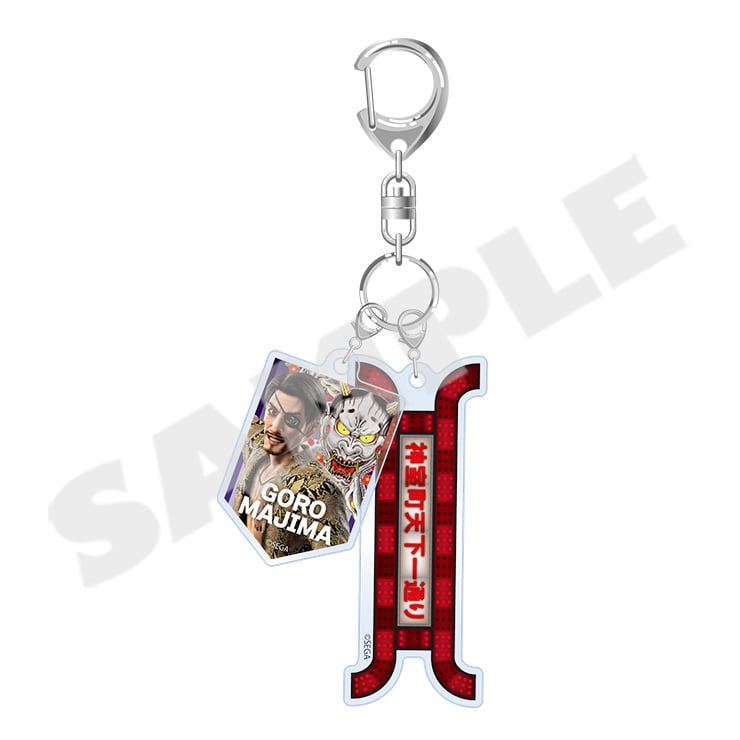 『龍が如く』を象徴する舞台「神室町」のお土産グッズをイメージした「神室町天下一通り」のアーケード看板とキャラクターがセットになった、2連アクリルキーホルダーです。 アクリルパーツにはそれぞれカニカンがついているので、取り外して好きなところに付け替えて楽しむ事もできます。 キャラクターは春日一番、桐生一馬、真島吾朗、冴島大河、堂島大吾の全5種類です。