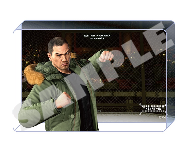 『龍が如く』グッズ自販機のリリースを記念して、『龍が如く』のキャラクターアクリルブロック5種類が登場。両面プリント仕様で、背景には『龍が如く』を象徴する舞台である神室町の代表的な景観がそれぞれ描かれています。