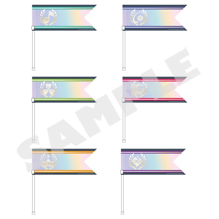キービジュアルをイメージしたユニットごとのフラッグになります!好きなユニットのミニフラッグで、5周年の記念すべき日を一緒にお祝いしましょう♪