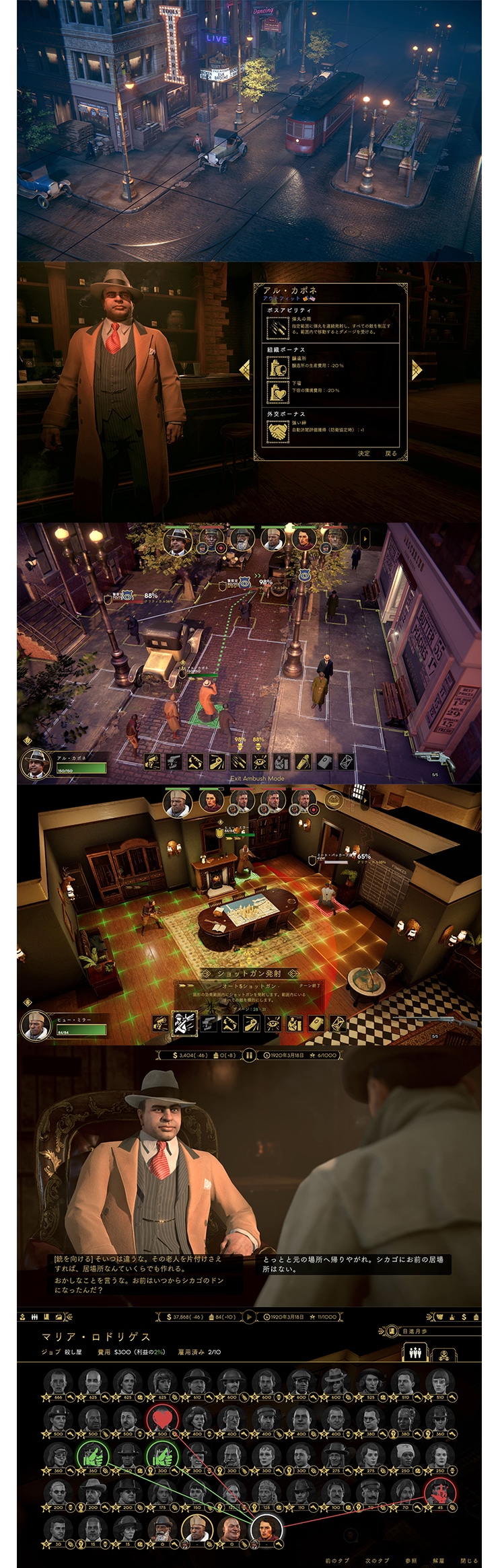アル・カポネをはじめとする個性豊かな「14人のボス」から1人を選び、敵対する全ての組織を壊滅し裏社会の頂点に立て!