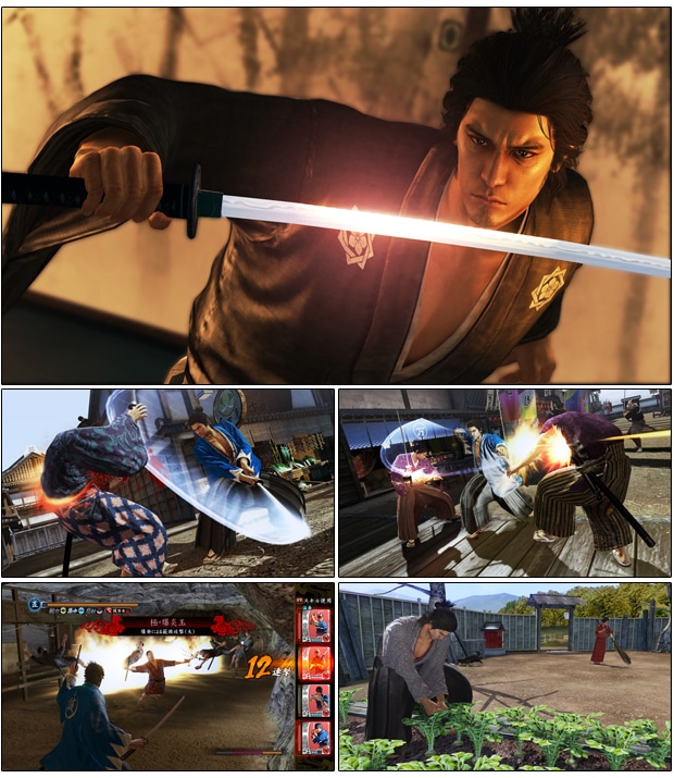 主人公である坂本龍馬(斎藤一)は剣と短銃を使いこなし様々な敵と闘いを繰り広げます。一撃必殺の太刀を繰り出す「一刀の型」、リボルバー式の短銃を使って敵を翻弄する「短銃の型」、己の拳のみで敵を叩きのめす「格闘の型」、斬撃と銃撃を同時に行い大暴れする「乱舞の型」の4つのバトルスタイルが存在。また、「ヒートアクション」や「絶技」といった、シリーズお馴染みの大技もあり爽快なアクションが楽しめます。