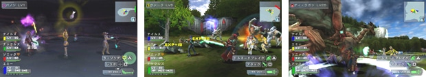 ファンタシースターポータブルでは、ストーリーモードで育てたキャラクターを使い、アドホックモードで、最大4人までの協力プレイができます。アドホックモードでパーティーを組むと、パーティリーダーの戦闘タイプにより、ドロップアイテムの傾向も変化します。レアアイテムを求め、3つの惑星を駆け巡り、アクションとチームワークで様々なミッションに挑戦しましょう。