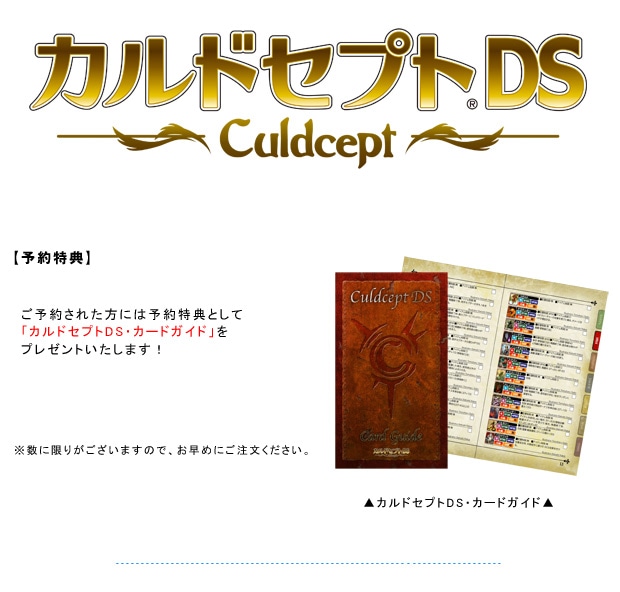 下記2点のセット商品になります。・NDS用ソフト『カルドセプトDS』・カルドセプトDS・カードガイド