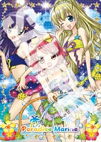 初回版同梱は夏にぴったりの、3人色違いがかわいい水着の「スペシャル(・∀・)パラダイスマリン」カード。