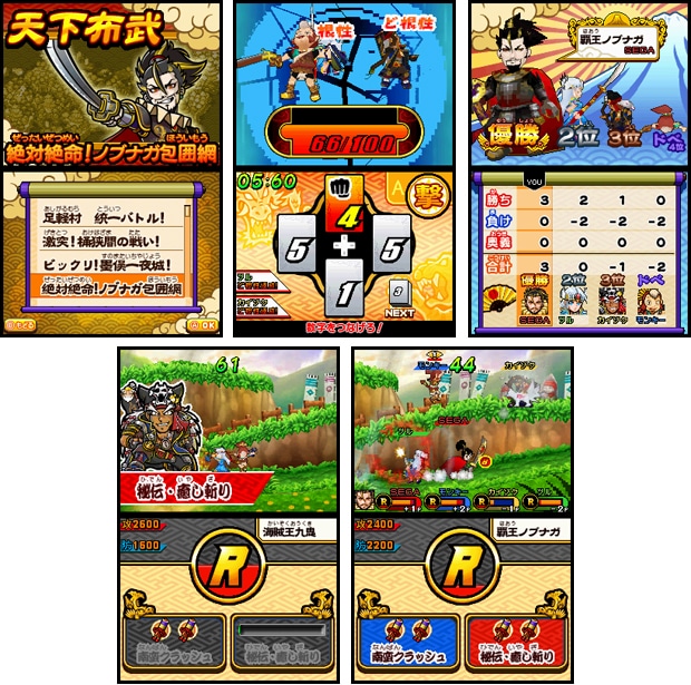 アクションゲームとなった本作でも『歴史大戦ゲッテンカ』の魅力であるカスタマイズの遊びは実装されています。戦国武将を中心としたキャラクターに武器・アイテムを組み合わせて、自分の戦略に応じてキャラクターのタイプを変えることができ、アクションゲームに戦略性を加えた新しいバトルを楽しめる。さらに、ワイヤレス通信では最大4人まで同時に対戦することも可能。
