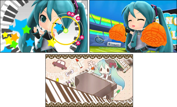 ニンテンドー3DSの3D機能を活かしたPVはもちろん全曲3D対応、ねんどろいどの歌姫たちを3Dで楽しめます。さらに人気楽曲の動画も3Dで実現!「Project mirai」でしか見ることのできない特別仕様です。そして大注目のAR!付属のARカードを使えばいつでもどこでもそこがコンサート会場!歌姫たちのパフォーマンスを3Dでお楽しみください!!