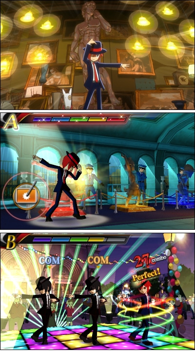 ストーリーをリズムゲームで進めることで、今までにない感情が動くリズムゲームを実現。シチュエーションにマッチしたリズムゲームは、ダンスを始め、ルーヴル美術館への侵入、警官からの逃走など、豊富なバリエーションがあり、その収録数は50個!更に「ジャイロ」「スライド」といったニンテンドー3DSの機能をフルに活用した多様な操作性が加わることで、飽きのないプレイ感覚を提供します。