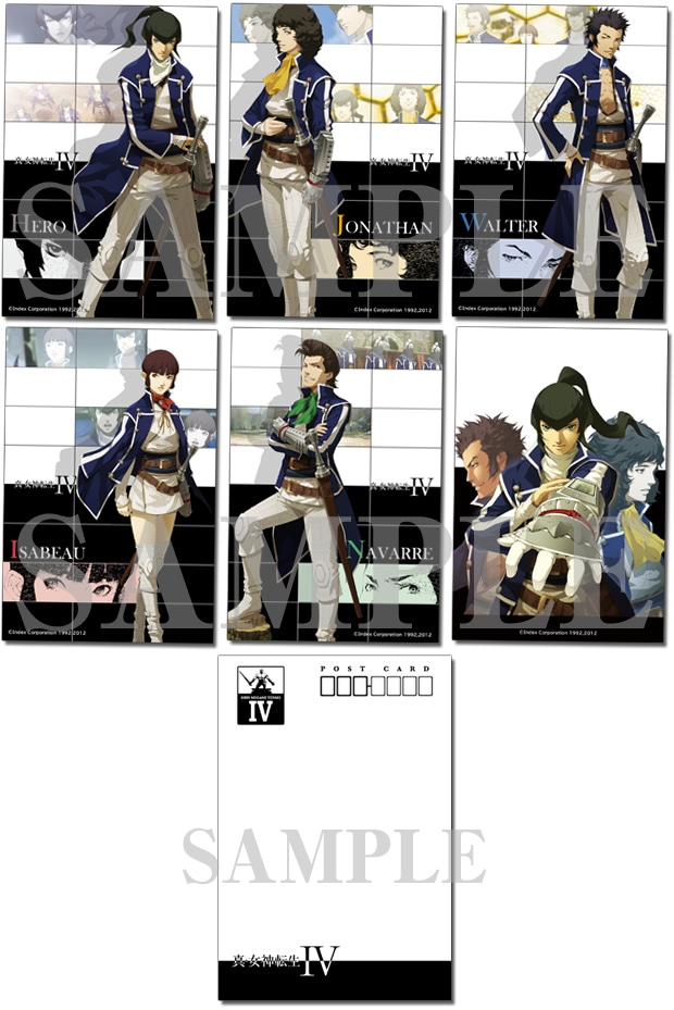 主人公・ヨナタン・ワルター・イザボー・ナバール、5人のサムライをそれぞれ配したビジュアルポストカード5種。さらに週刊ファミ通2012年10月4日号の表紙を飾ったイラスト1種を含めた全6種セットです。
