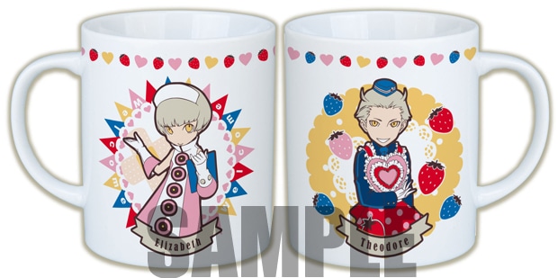 ペルソナシリーズでおなじみ『ベルベットルーム』の住人であるエリザベスとテオドアが配された「保健室」と「てづくりこ~ぼ~」をモチーフにデザインされたマグカップです。