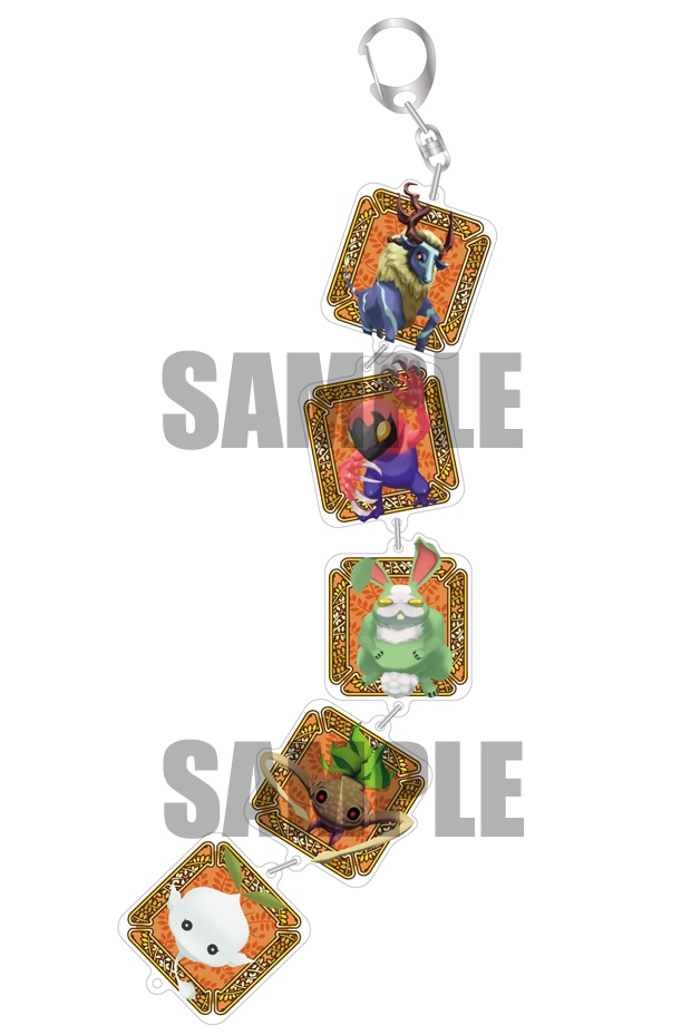 本作に登場するモンスター5種のアクリルチャームを繋げた、全長約25cm(キーホルダー部分含む)の存在感たっぷりのキーホルダーです。