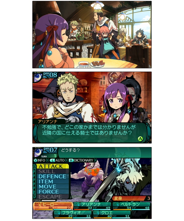 異形の姿に変身することで秘めた力を発揮する主人公と、個性豊かな4人の仲間たち。そして世界樹を巡る壮大な物語が、プレイヤーを待ち受けます。キャラクターデザインは、もちろんシリーズおなじみの日向悠二氏描き下ろし!さらに緑川光氏や井口裕香氏など豪華実力派声優陣がボイスを担当。シリーズファンはもちろん、キャラクター同士の掛け合いやストーリーを楽しみたいRPGファンにも満足して頂ける内容に!