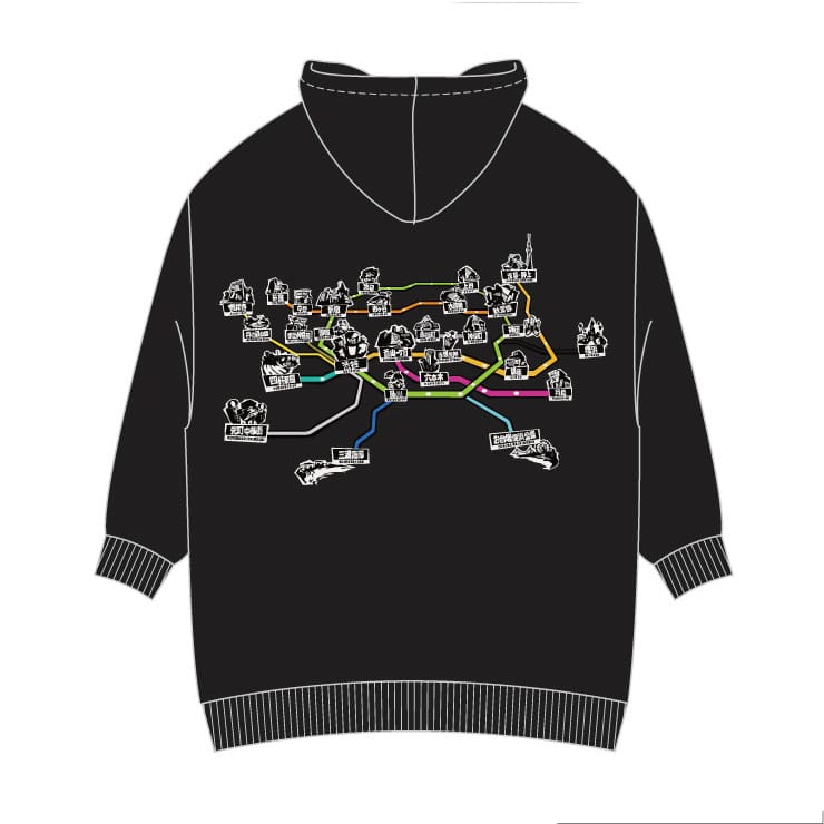 バックスタイルに路線図を大胆にデザインしたパーカー。