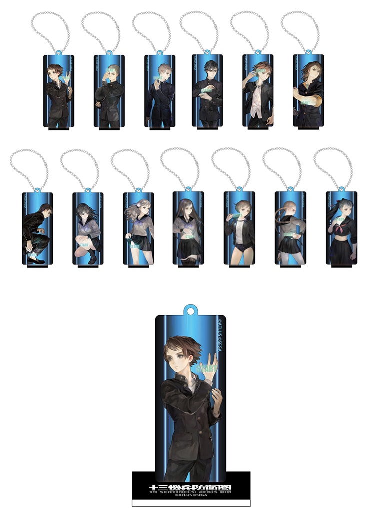 13人のキャラによる機兵召喚シーンを再現したアクリルキーホルダーが登場。台座パーツもついているのでアクリルスタンドとしても飾れます!
