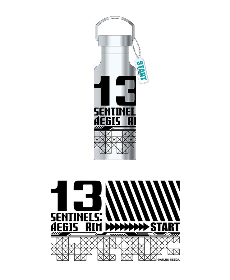 『十三機兵防衛圏』2周年を記念したステンレス製のオリジナルボトルが登場!スマートなボディは持ち運びしやすく、保温・保冷効果もばっちり。「START」の文字が入ったアクリルチャームが気分を盛り上げます。