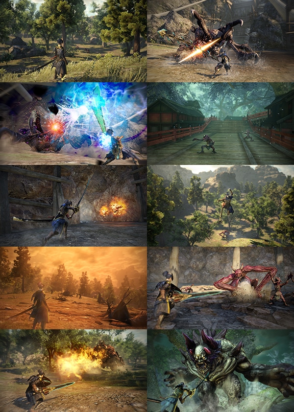 鬱蒼とした森に埋もれる街、溶岩たぎる火山に立つ神殿、天空に浮かぶ城郭など、異形の世界を踏破し、時に人と出会い、時に“鬼”と遭遇するハンティングアクションの新しい形が体験できます。
