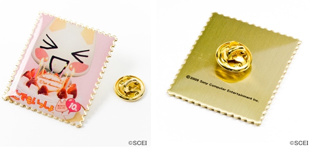 どこいつ10周年記念アニバーサリーデザインの切手型のピンズが登場。お祝いのケーキをもらって喜んでいるトロがとってもかわいい。ピンズをはずすと台紙にもトロがいるよ。