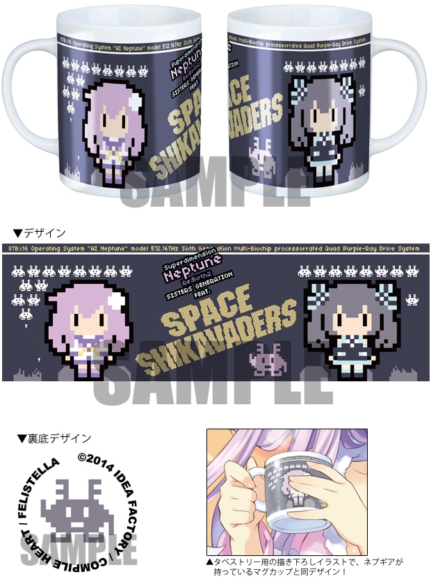 ドットテイストで描かれたネプギアやユニをモチーフにオリジナルデザインを施したマグカップです。