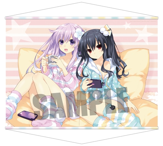 本作の描き下ろしイラストが描かれたB2サイズ(515×728mm)の大判タペストリーです。絵柄は、「一緒に携帯機(Nギア)を楽しむリラックスしたひととき」をテーマに、作中とは雰囲気の異なるネプギア、ユニが描かれた一枚です。