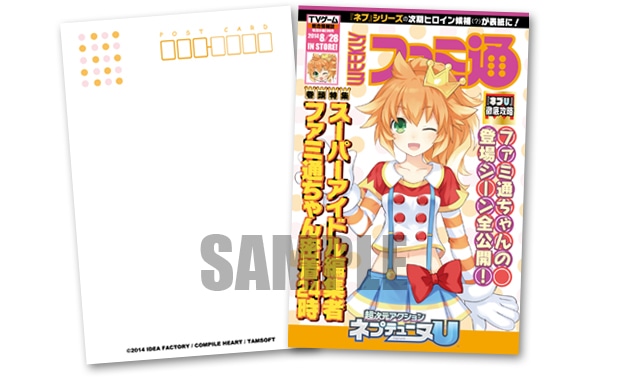 週刊ファミ通とのコラボ企画として本作にもプレイアブルキャラクターとして登場する「ファミ通ちゃん」。『ネプテューヌ』シリーズのキャラクターデザイナーつなこ氏により描かれたかわいいイラストを配したポストカードです。キャッチコピーは実際の担当編集スタッフによって書かれた、週刊ファミ通表紙風デザイン。