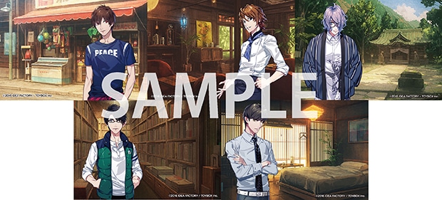 「迦具土ヒノ」「甘梨イソラ」「櫛奈雫トア」「建比良ソウスケ」「叢雲ユヅキ」の5人の書き下ろしSS入りポストカード。