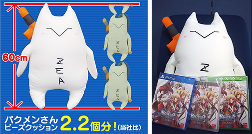 「でかパクメンさんビーズクッション」を1つお買い上げごとにBLAZBLUEタオルリストバンド「ハザマ」を1つ同梱致します。
