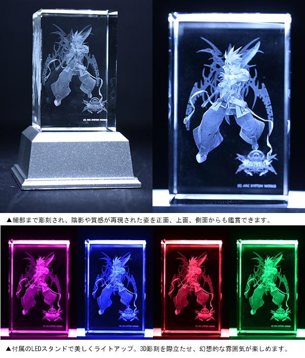 『BLAZBLUE』の「ラグナ=ザ=ブラッドエッジ」のイラストをクリスタルキューブ内に3D立体レーザー彫刻された商品です。