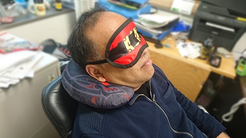 ザトーとエディのアイマスクとネックピローをどうぞ!