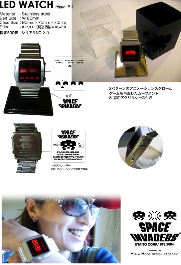 スペースインベーダーのLEDウォッチ。500個限定でシリアルNO.入りです。