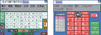 文字入力画面はタッチペンで操作可能なキーボードタイプ。さらに携帯電話タイプも用意。ATOKを搭載し、学習、予測変換を可能としています!