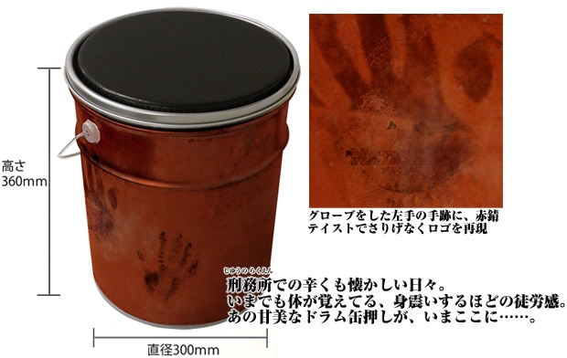 サイズも高さ約360mm×直径300mmと大きく、クッションも付いているので本編をプレイしながらイスとして使えます。もちろん収納、ペール缶としても使用可能ですクルス! そんな魅惑のドラム缶を、あなたのお手元にお届けしちゃいますよ!!