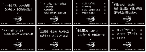 | ●オリジナルサウンドトラック CD3枚組 「METAL MUSIC ManiAX ~メタルキューブ~」 Disc1:メタルマックス(ファミリーコンピュータ版)……37曲 Disc2:メタルマックス2(スーパーファミコン版)……36曲 Disc3:メタルマックス3(ニンテンドーDS版)……8曲 ★ 試聴はコチラから URL:http://www.famitsu.com/sp/100625_metalmax3_dx/index.html