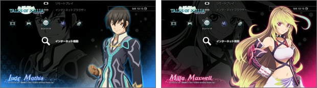 初回生産分のパッケージ内に封入された紙に記載されたプロダクトコードで、藤島先生といのまた先生に初めてデザインを担当していただいたタイトルの主人公風の衣装が手に入ります。「テイルズ オブ エクシリア」のジュードを「テイルズ オブ ファンタジア」のクレス風の衣装に、ミラを「テイルズ オブ デスティニー」のスタン風の衣装に着せ替えることが出来ます。