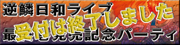 ![]() ![]() 2011年6月26日(日) [開演]午後2:00(午後6:00終了予定) ※ライブ配信は1時間30分程度を予定しています。 ![]() イベントスペース“WinPa -ウィンパ-” (東京都千代田区三番町6-1 エンターブレイン2F) ![]() Ustream放送“逆鱗日和ライブ”では、大塚角満が『逆鱗日和』に関するトークと『モンスターハンターポータブル 3rd』のプレイを披露。観覧者の中から希望する方と協力プレイも予定しています。 ライブ配信後は、同会場にて観覧者どうしや大塚角満と交流できるささやかなパーティを実施いたします。 パーティの詳細はコチラ ![]() ご注文いただく際に、プルダウンメニューから「『明日もきっと! 逆鱗日和』(ライブ&パーティ応募・同伴者なし)」もしくは「『明日もきっと! 逆鱗日和』(ライブ&パーティ応募・同伴者あり)」を選んでお手続きください。必要項目をすべてご入力いただき、ご注文が成立した時点で、ご応募も完了となります。 ※購入時にご入力いただいたメールアドレスあてに当選通知メールをお送りしますので、迷惑メールフィルタや ドメイン指定受信をご利用の場合は、「no_reply@ebten.jp」(PC)からのメールを受信できるよう設定してください。 ![]() 合計50名 ![]() 2011年6月16日(木)午前8:00注文完了分まで ![]() 6月16日以降に、当選者へのみ通知メールをお送りした後、『明日もきっと! 逆鱗日和』に招待状を同梱して発送いたします。 ※招待状同梱のため、6月25日以降に発売を予定している商品は、対象書籍と同梱できません。6月25日以降の発売商品を一緒にご注文いただいた場合は、別途ebten事務局より連絡のうえ、変更のお手続きを行っていただきます。 ![]() ※あらかじめ下記の項目にご了承のうえでご注文ください ◎応募者1名に対し、1名まで同伴が可能です。同伴者がいる場合には、ご購入の際に“同伴者あり”をお選びください。 ◎15歳未満の方は、保護者の同伴が必要となりますので、かならず保護者の同意のもと“同伴者あり”をお選びください。なお、未就学児の入場・同伴はお断りいたします。 ◎入場の際に本人確認をさせていただく場合がありますので、当日は身分を証明できるものをご持参ください。 ◎イベント会場までの往復の交通費は、すべて自己負担となります。 ◎招待状・当選通知は譲渡(転売、オークション出品を含む)しないことを応募・当選の条件とします。譲渡が明らかになった場合、当選は取り消され、入場をお断りする場合があります。 ◎当日の様子(参加者の容貌・発言を含みます)は、“逆鱗日和ライブ”にてライブ配信されるほか、大塚角満ブログならびに (株)エンターブレインの出版物・記録媒体(DVDを含みます)・ウェブサイト等に掲載、収録、配信させていただくことがあります。 ◎お客様からご提供いただいた個人情報につきましては、(株)エンターブレインのプライバシーポリシーの定めるところにより、取り扱わせていただきます。 ![]() <注文・応募について> ebten事務局 問い合わせフォーム: https://ebten.jp/contact/ <イベント内容について> エンターブレイン カスタマーサポート 電 話:0570-060-555(土日祝日を除く12:00~17:00) メール:support@ml.enterbrain.co.jp | ||||
