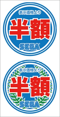 お買い上げの方には、もれなく「なんちゃってSEGA半額シール」をプレゼント!!実際に半額になる訳ではありませんが「月桂樹」Verも一緒にプレゼントいたしますので、是非、半額神になった気分で色々な物に貼って楽しみましょう!