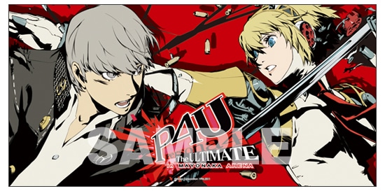 副島成記氏による、主人公(鳴上悠)・アイギスが激しくぶつかる躍動的なP4Uコンセプトアートをレイアウトした、マイクロファイバー製の10cmx30cm大判サイズのマルチクロス。